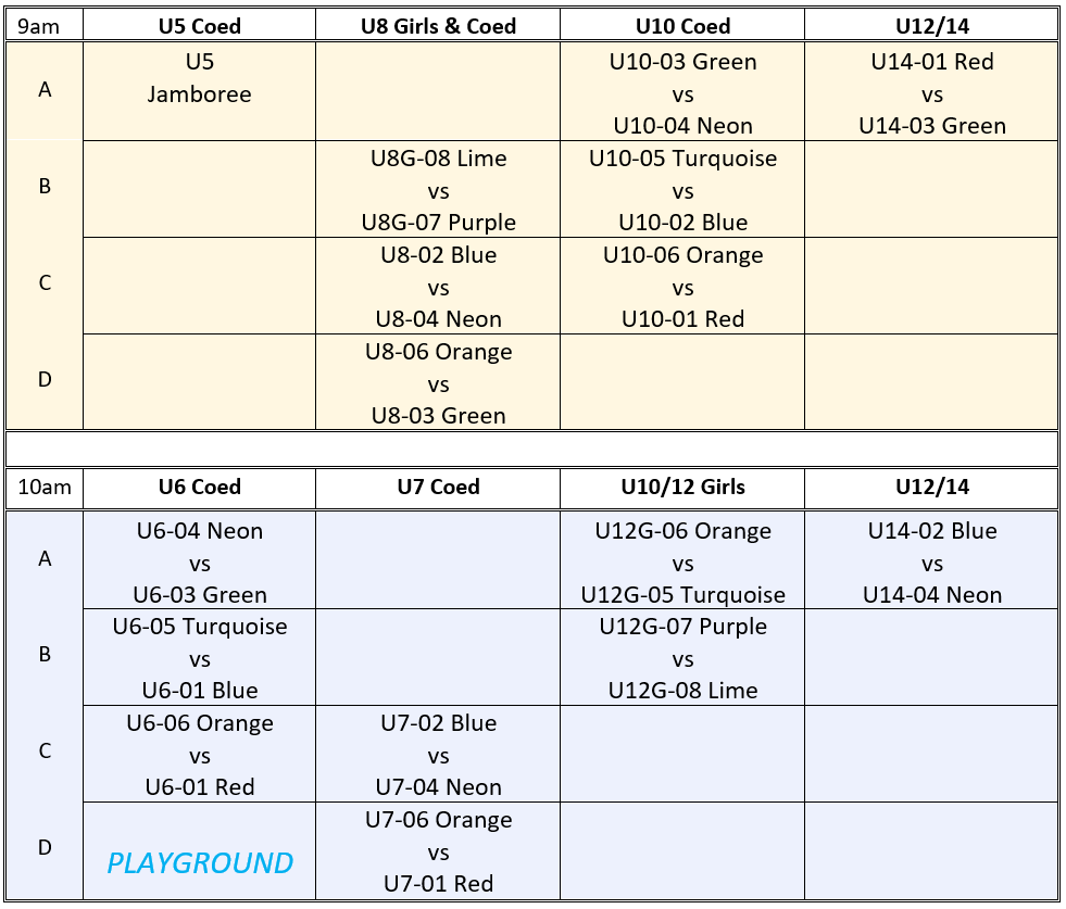 U6 Coed Game Schedule - Fall 2025: All teams, 10am each week